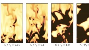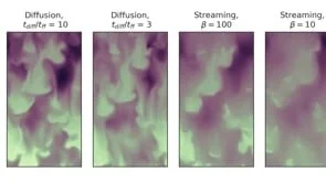 The movies to the right are animations of some figures from Butsky et al., 2020. They model the formation and precipitation of cold gas through thermal instability in a gravitationally stratified medium, analogous to the CGM of an L* galaxy. The physical extent of each box is 43 kpc x 80 kpc and all movies are evolved for 10 cooling cycles,(which can correspond to different physical times for simulations with different ratios of the cooling time - to free fall time (tcool / tff)). All simulations are initialized with weak magnetic fields (plasma beta = 100). The direction of gravity is down.